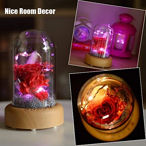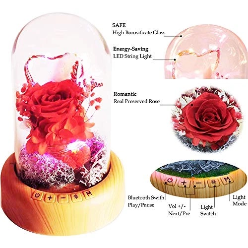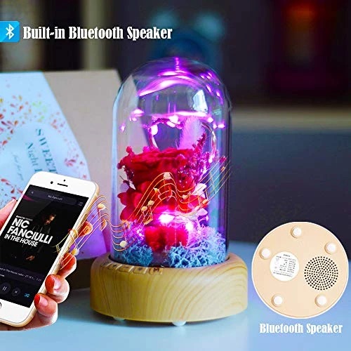Real Eternal Rose in Glass Dome, Night Light, Preserved Rose Flower Lamp with Bluetooth Speaker