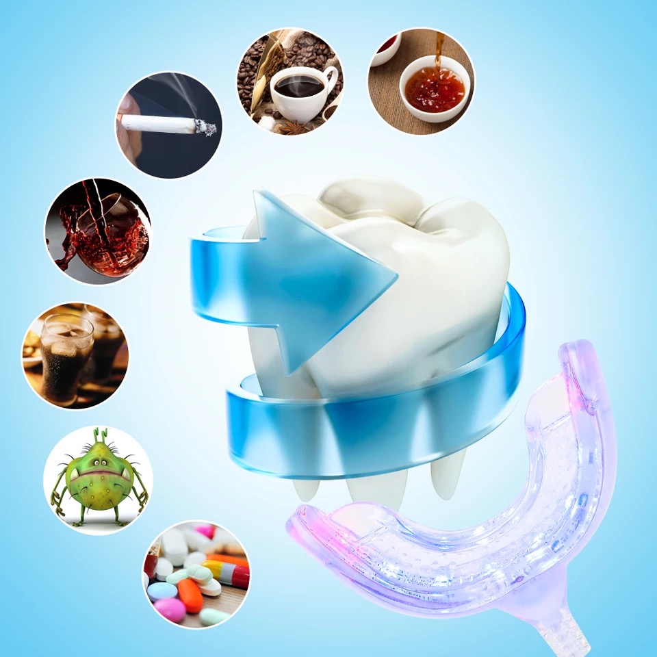 • Teeth Whitening Kit with LED Accelerator Light...Easily Restore Healthy, White Teeth